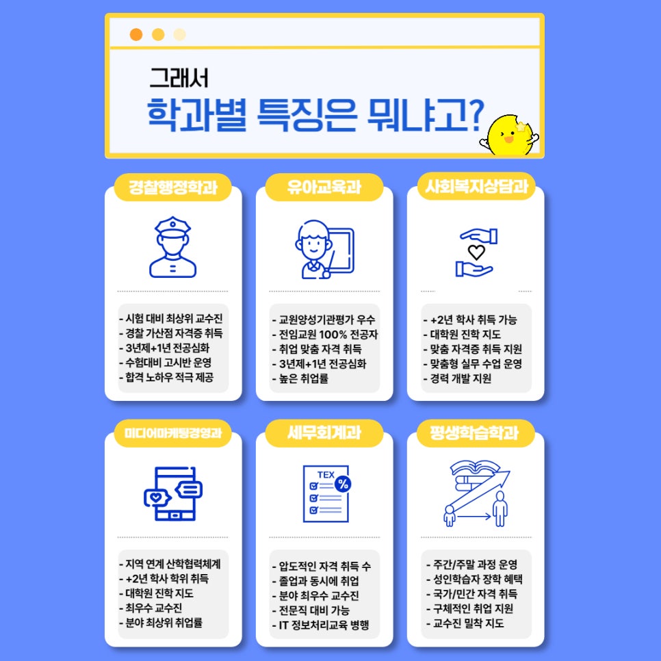 유아교육과·경찰행정학과 등에서 살펴볼 수 있어요.